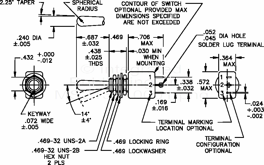 MS21351 Switch, Toggle, Positive Break, Special Circuit, Miniature Toggle Sealed, Solder Lug, Single Pole, .469 Mounting Bushing