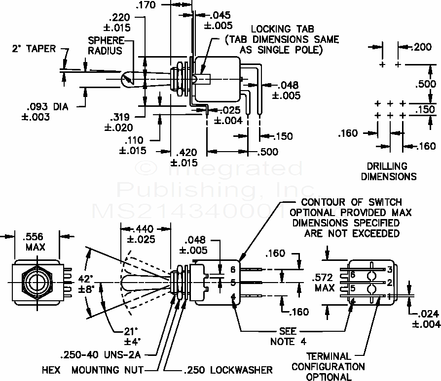 MS21434 Switches, Toggle, Positive Break, Miniature, Toggle Sealed, Double Pole, Printed Circuit Board Terminals, Right Angle Mount