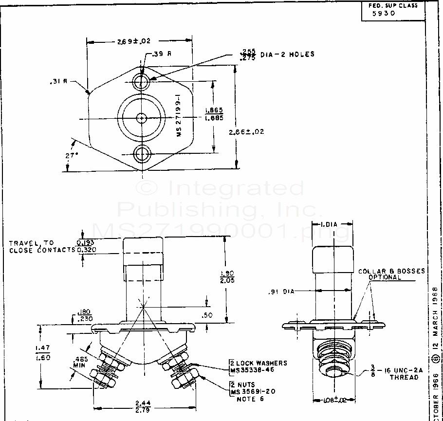 MS27199 Switch, Push-Spst, Heavy Duty, 24 Volt Dc (S/S By Mil-S-13625/1)