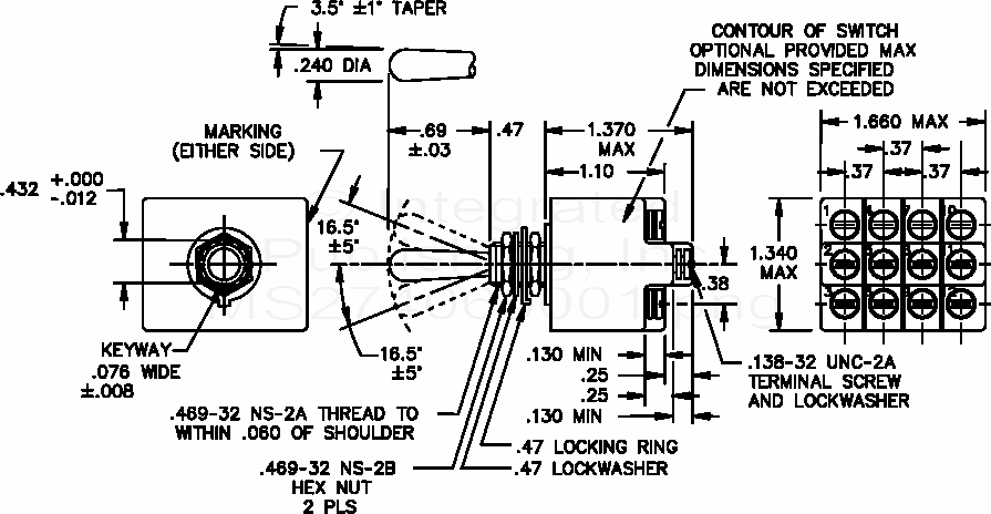 MS27406 Switch, Toggle, Four Pole, Environmentally Sealed