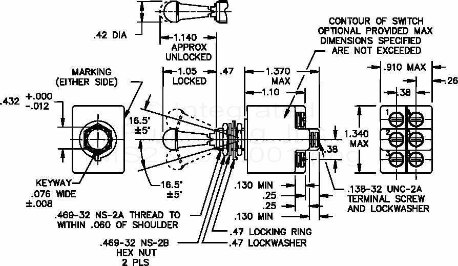 MS27408 Switch, Toggle, Two Pole, Environmentally Sealed, Lever Lock