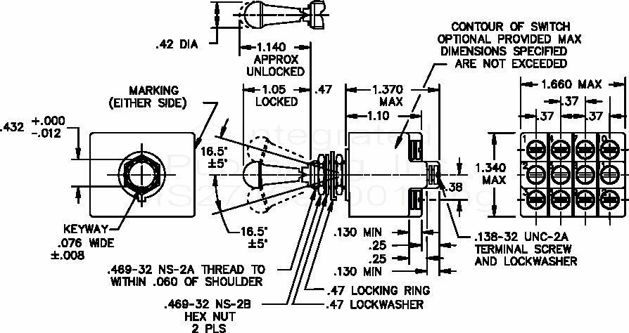 MS27409 Switch, Toggle, Four Pole, Environmentally Sealed, Lever Lock
