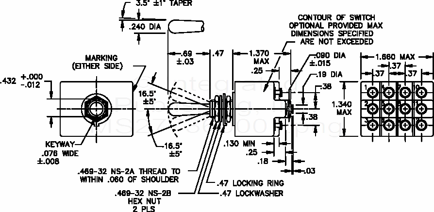 MS27736 Switch, Toggle, Four Pole, Environmentally Sealed, Solder Terminal