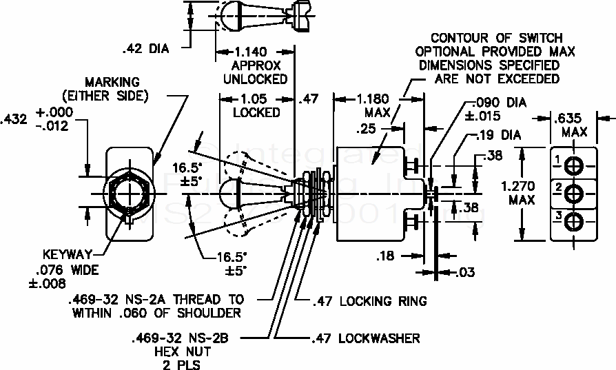 MS27737 Switch, Toggle, One Pole, Environmentally Sealed, Lever-Lock, Solder Terminal
