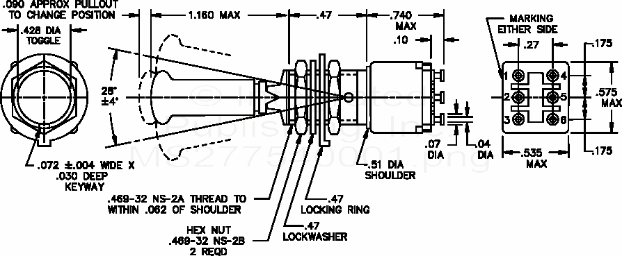 MS27754 Switch, Toggle, Miniature, Double Pole Toggle Seal, Lever Lock