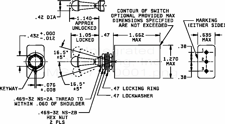 MS27781 Switch, Toggle, One Pole, Environmentally Sealed, Lever Lock, Integrated Wire Terminals