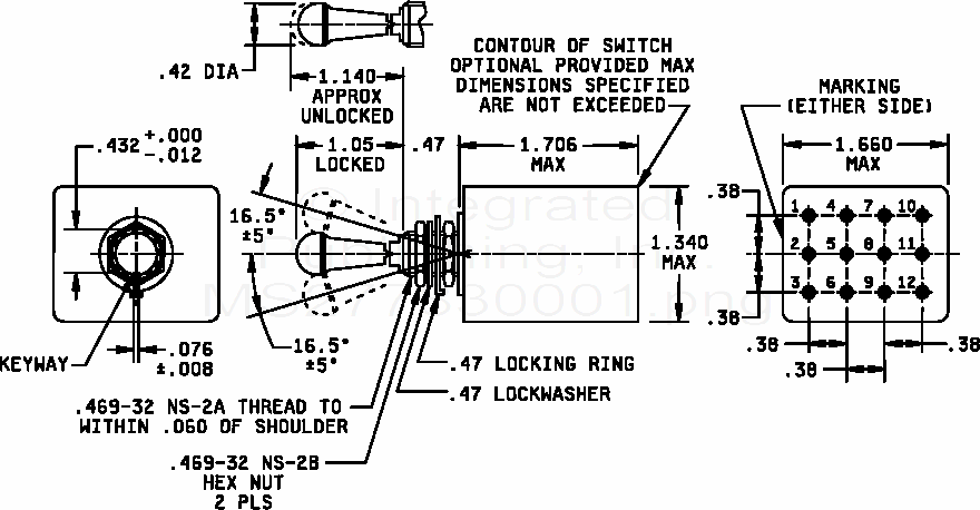 MS27783 Switch, Toggle, Four Pole, Environmentally Sealed, Lever Lock, Integrated Wire Terminals