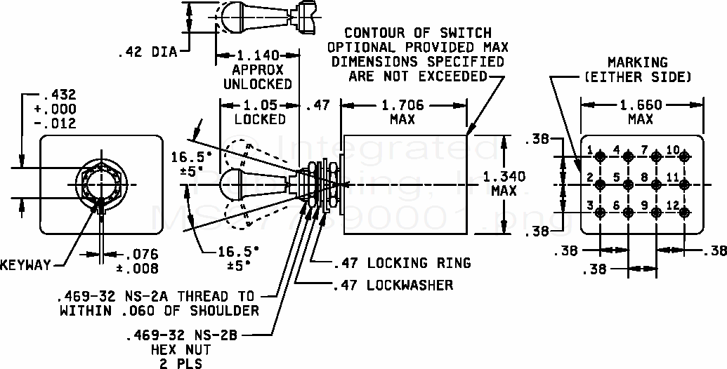 MS27789 Switch, Toggle, Four Pole, Environmentally Sealed, Lever Lock, Integrated Wire Terminals