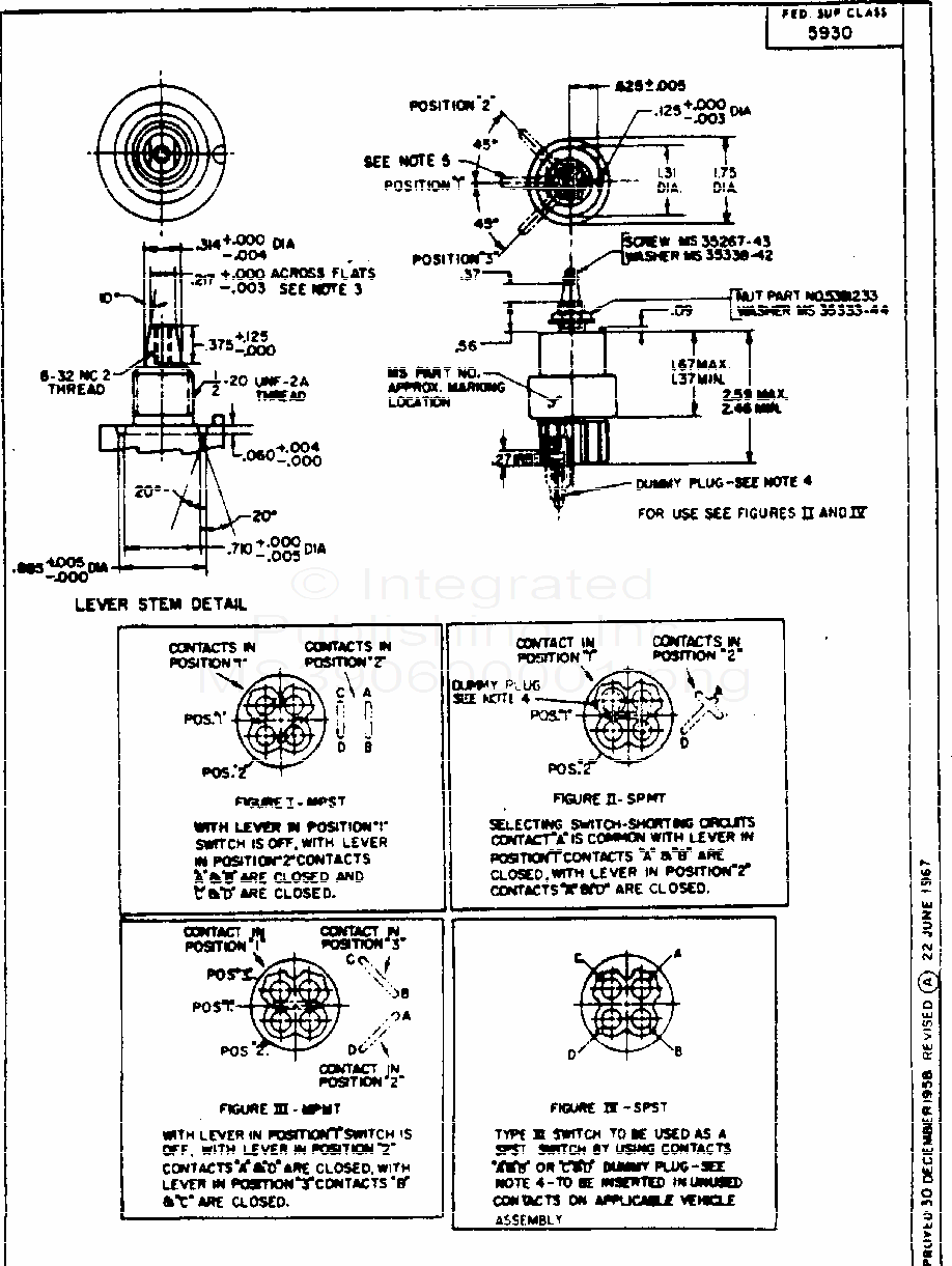 MS39060 Switch, Rotary, 28 Volt Dc, Waterproof (S/S By Mil-S-13623/1)