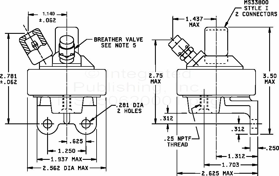 MS75062 Switch, Pressure-Stoplight, Vehicular, Air Brake System, 24 Volt, Waterproof