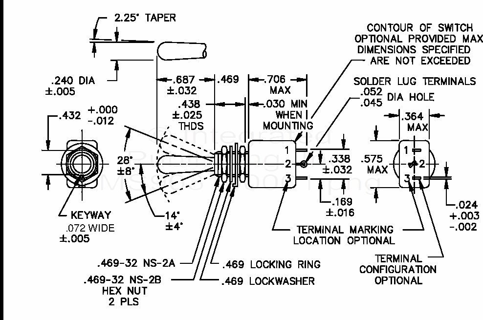 MS90310 Switch, Toggle, Positive Break, Miniature, Toggle Sealed, Solder Lug, Single Pole, .469 Mounting Bushing